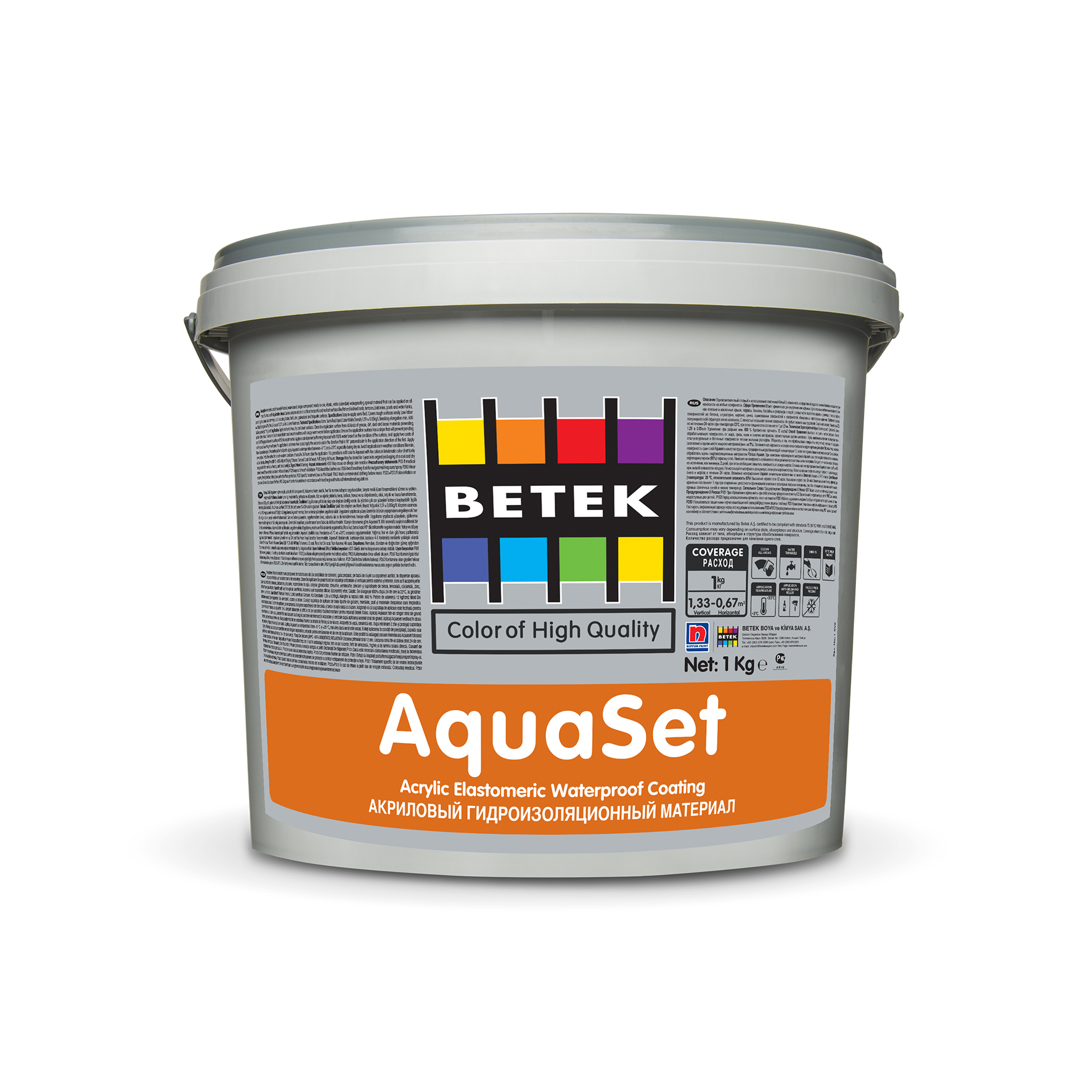 Повърхността, върху която ще се нанася водоизолиращият материал, трябва да е много добре почистена от масла, прах и стара боя, за да не пречат на адхезията. Преди продуктът да се нанесе върху бетонни и шпакловани повърхности, е препоръчително те да се измият с разтвор от 1 част солна киселина и 10 части вода. Третираните повърхности трябва да бъдат под лек наклон, за да се избегне излишно натрупване от материала. Използвайте Betek Stako за изравняване и заглаждане на пода. Нанасянето да се извърши минимум на два слоя, като всеки следващ да е перпендикулярен на предишния. Изчакайте 24 часа между нанасянето на слоевете. Нанесете влакнест водоизолиращ материал Betek Fibrous Aquaset на местата, на които се е събрало част от продукта, за да се разнесе и премахне. Повърхностите, третирани с водоизолиращия материал, трябва да се предпазват 24 часа от дъжд, сняг и замръзване. По време на нанасяне температурата на повърхността трябва да е между +5°C и +35°C, а влажността 65%НВ. Предпазващ слой трябва да се нанесе върху водоизолиращия материал, когато той се прилага върху повърхности, които са изложени на механични удари и при които се търси висока устойчивост от следи на токове и обувки.