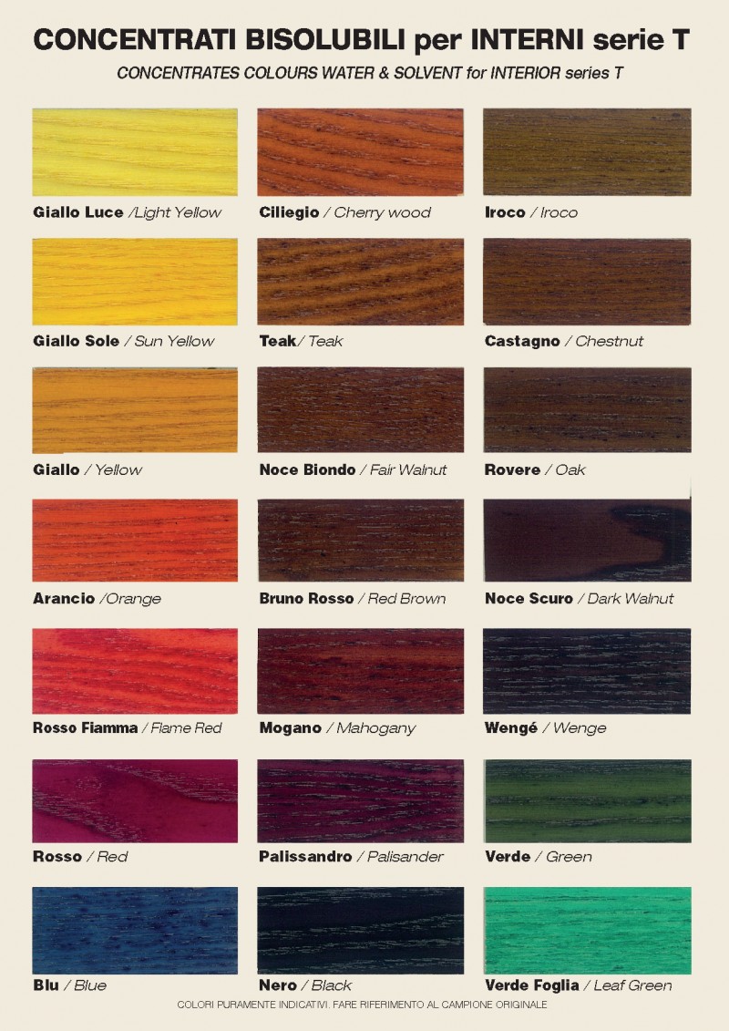 Оцветител - концентрат, предназначен за оцветяване на повърхности от естествен дървен материал, прониквайки дълбоко в порите на дървото без да скрива структурата му. Употребява се върху сурова дървесина.