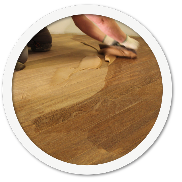 След шлифовката на дървения под с шкурка със зърненост 30 или 60, нанесете продукта, смесен с дървените стърготини останали от предишна шлифовка с шкурка със зърненост 100 като използвате гладка шпакла. След 30-40 минути може да продължите заглаждането с шкурка със зърненост 100/120, след което да нанесете грунд или лак, който не изисква предварителен слой грунд. Препоръчително е винаги да се правят предварителни тестове в случай, че запълването се извършва при дървесина със високо съдържание на танин (като дъб и акация).
