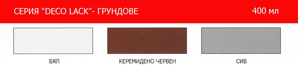 Грундове са подходящи за грундиране на почти всяка повърхност - метал или пластмаса, преди да нанесете като финишен слой лак. Грундовете DECO LACK® съхнат бързо, характеризират се с висока непрозрачност и отлична адхезия към основата.