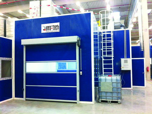 Този модел камера е без дъно, със сервизна врата, със засмукване от долната част на камерата, с цял таван от филтри. Монтира се върху бетонен фундамент от тунели, приготвени предварително от клиента. Вкарването на бусове и товарни автомобили става от предната трикрилна врата, а бояджията използва сервизната врата. Постъпва свеж въздух от горната част на камерата, след което се засмуква от долната част на камерата. Този модел камера може да се изпозва за боядисване и изпичане на боята при бусове и товарни автомобили.