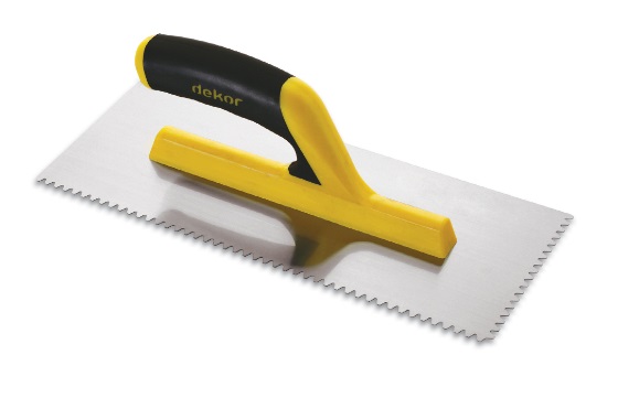 Маламашка с гумирана отворен тип дръжка с мек захват. Използва се за разстилане на лепило при лепене на квадратни малки плочки в басейни и фасади.