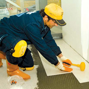 It is produced from special plastic material. In floor tiling, it is used for protecting the knees.