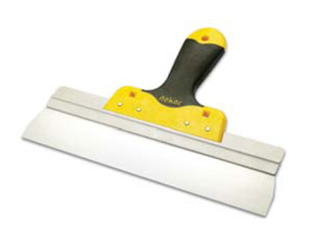 It is manufactured from stainless steel. Steel blade is placed an aluminium profile that is fixed to soft grip. It is used for applications of plastering ceiling and walls.