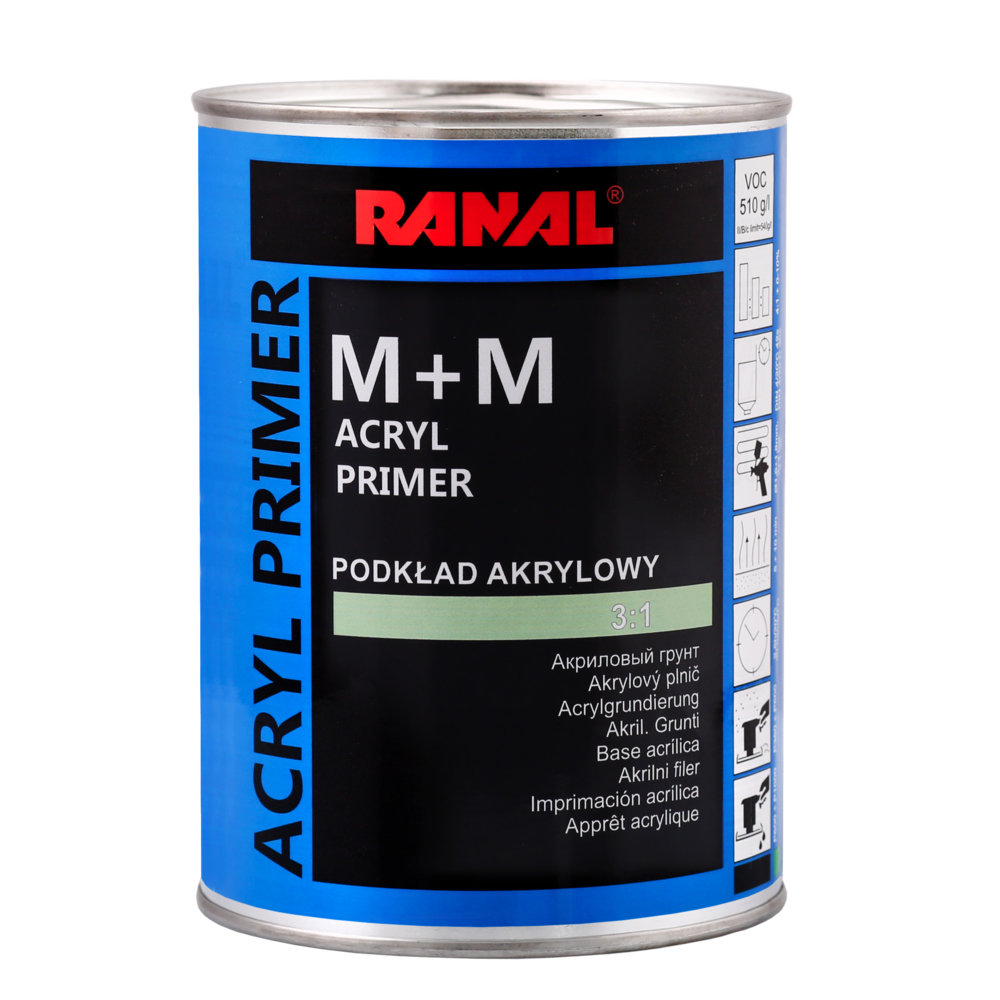 Мокро върху мокро Акрилен грунд М+М 3 части Втвърдител 1 част За разреждане използвайте разредител за акрилни продукти в количество 1 част