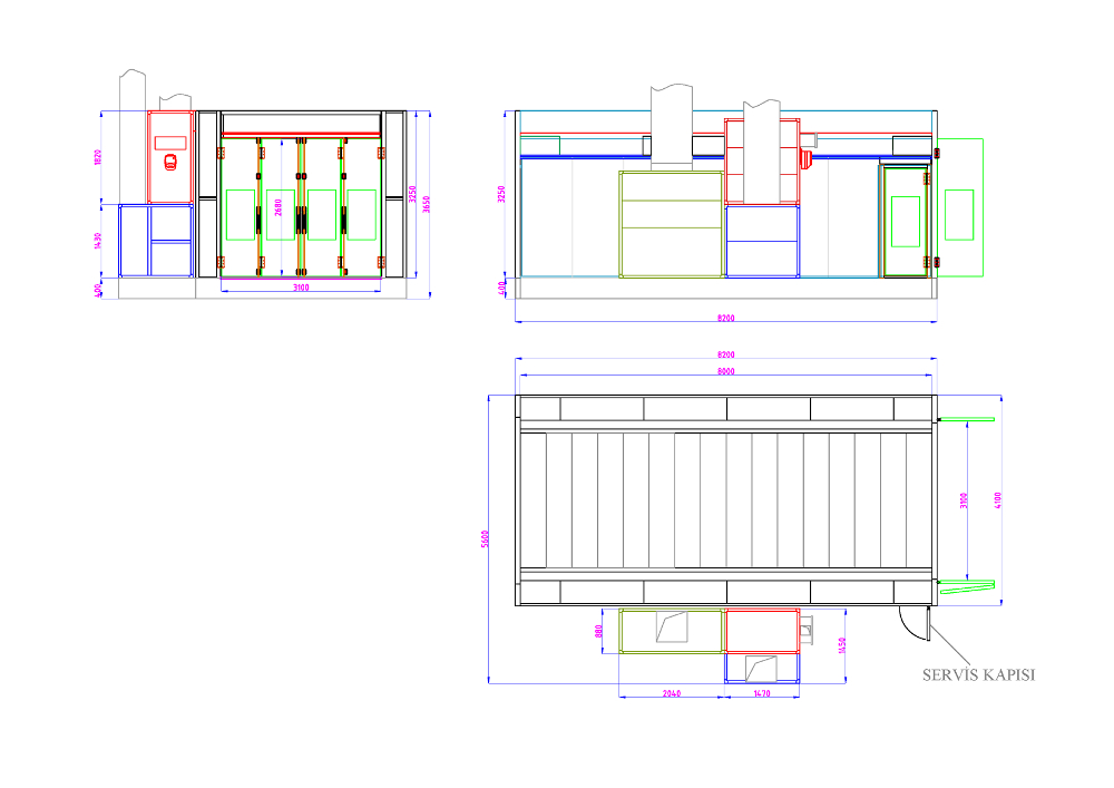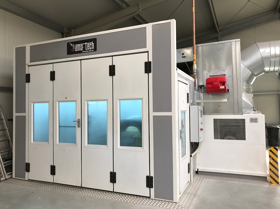 Този модел камера е с дъно, със сервизна врата, със засмукване от долната част на камерата, с цял таван от филтри. Монтира се върху гладка бетонна повърхност, може и да се вкопае в земята. Вкарването на коли и бусове става от предната трикрилна врата, а бояджията използва сервизната врата. Постъпва свеж въздух от горната част на камерата, след което се засмуква от долната част на камерата. Този модел камера може да се изпозва за боядисване и изпичане на боята при леки коли и бусове.