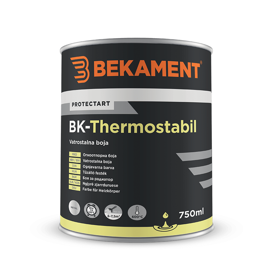 Температуроустойчиво покритие-боя за предпазване на материали, постояно изложени на температура до 600 ° C. Използва се за котли, печки, ауспуси, радиатори, електропроводи и други места, изложени на постоянна температура. При необходимост се разрежда с нитроцелулозен разредител BKNitroExtra.