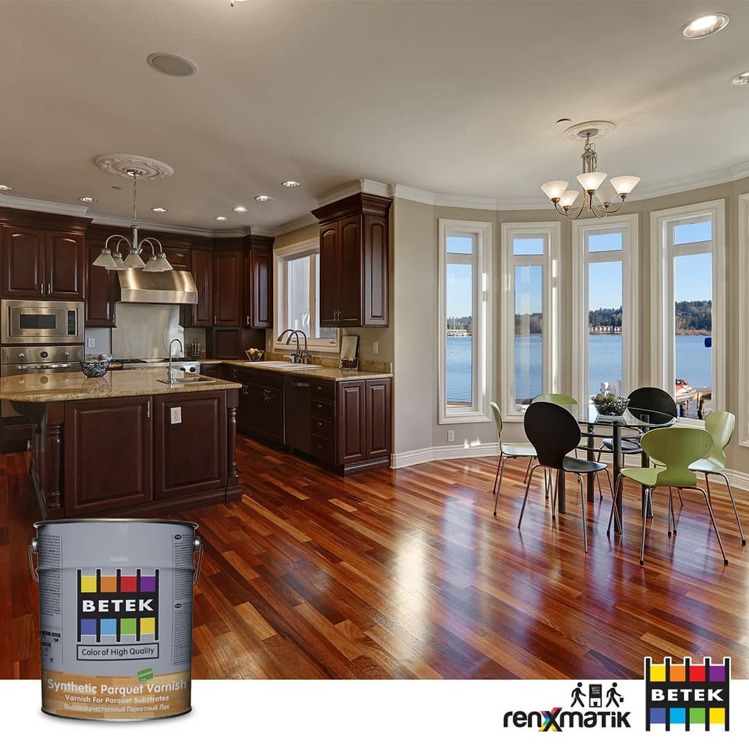 Синтетичен лак за паркет, който се използва в закрити повърхности. Гланц. Безоловен. Устойчив на драскотини, удари и почистващи препарати, които се използват в домакинството. Не оставя следи от четка.