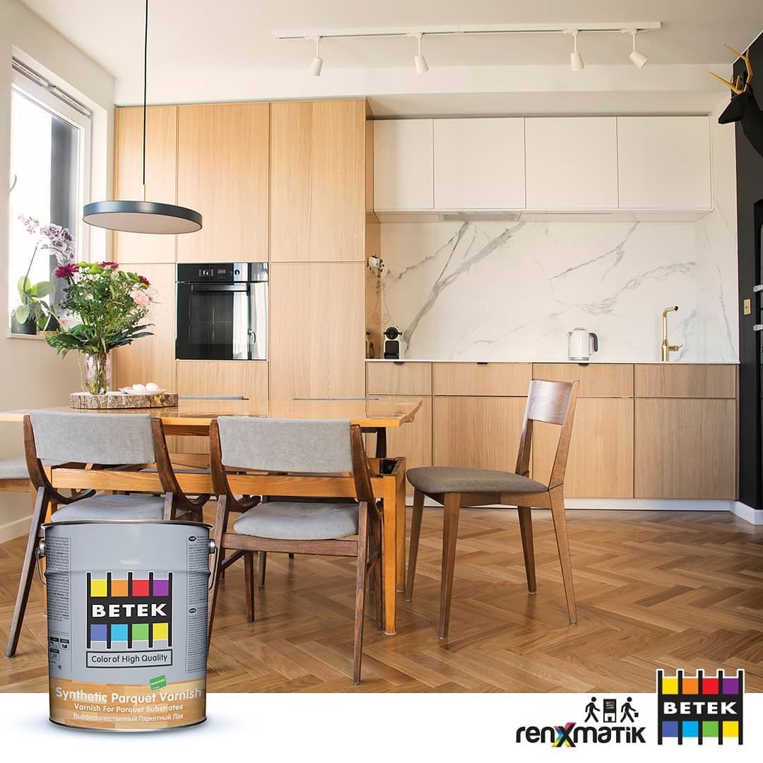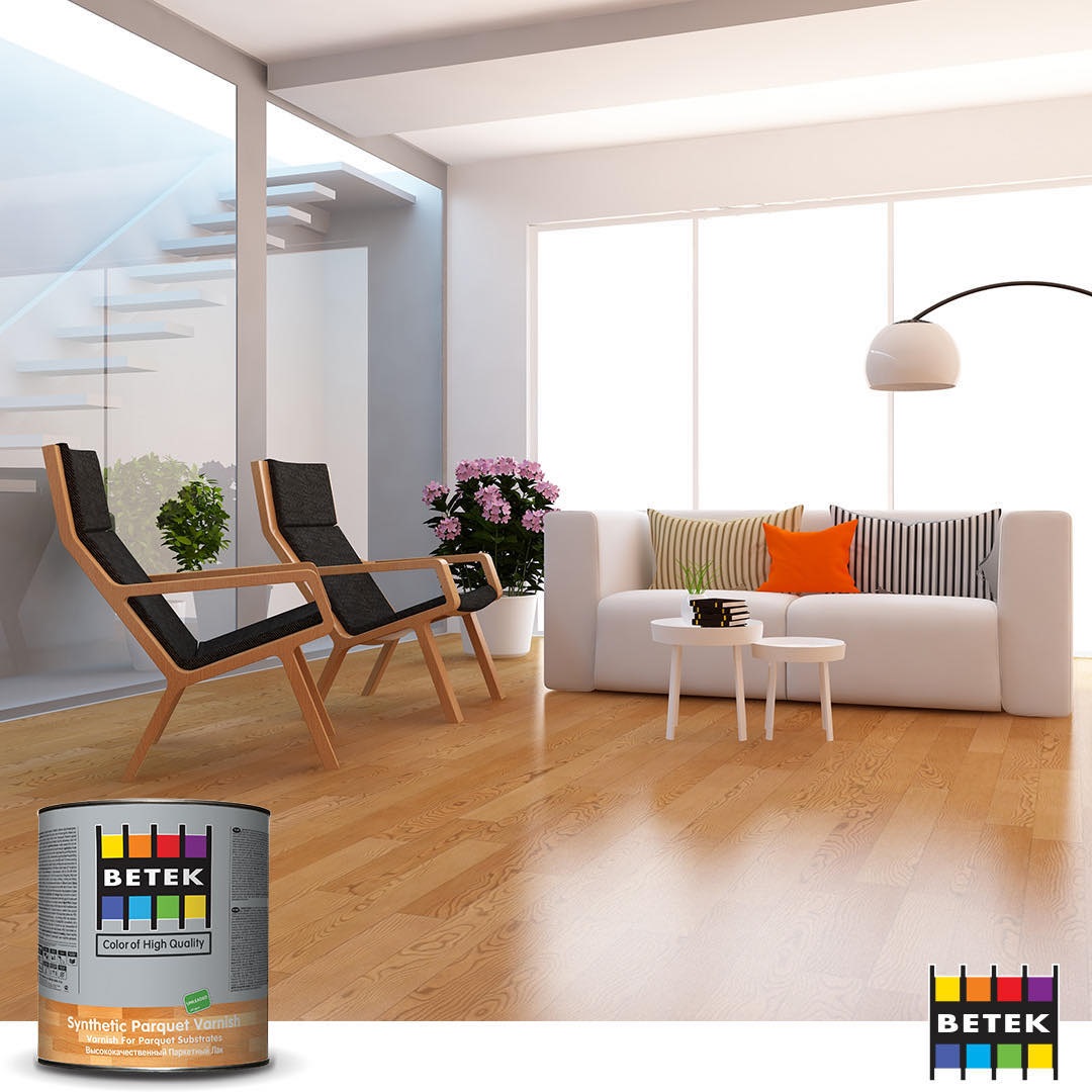 Повърхностите, върху които ще се полага Синтетичният лак за паркет, трябва да се почистят и изсушат. Ако има нужда, повърхността се почиства механично. Грундира се с Грунд за паркетен лак. Betek Synthetic Parquet Varnish се полага на 2 или 3 слоя, в зависимост от повърхността. По време на нанасяне температурата на повърхността и трябва да е между +5°C и +30°C. Нанася се с четка, валяк или чрез пръскане.