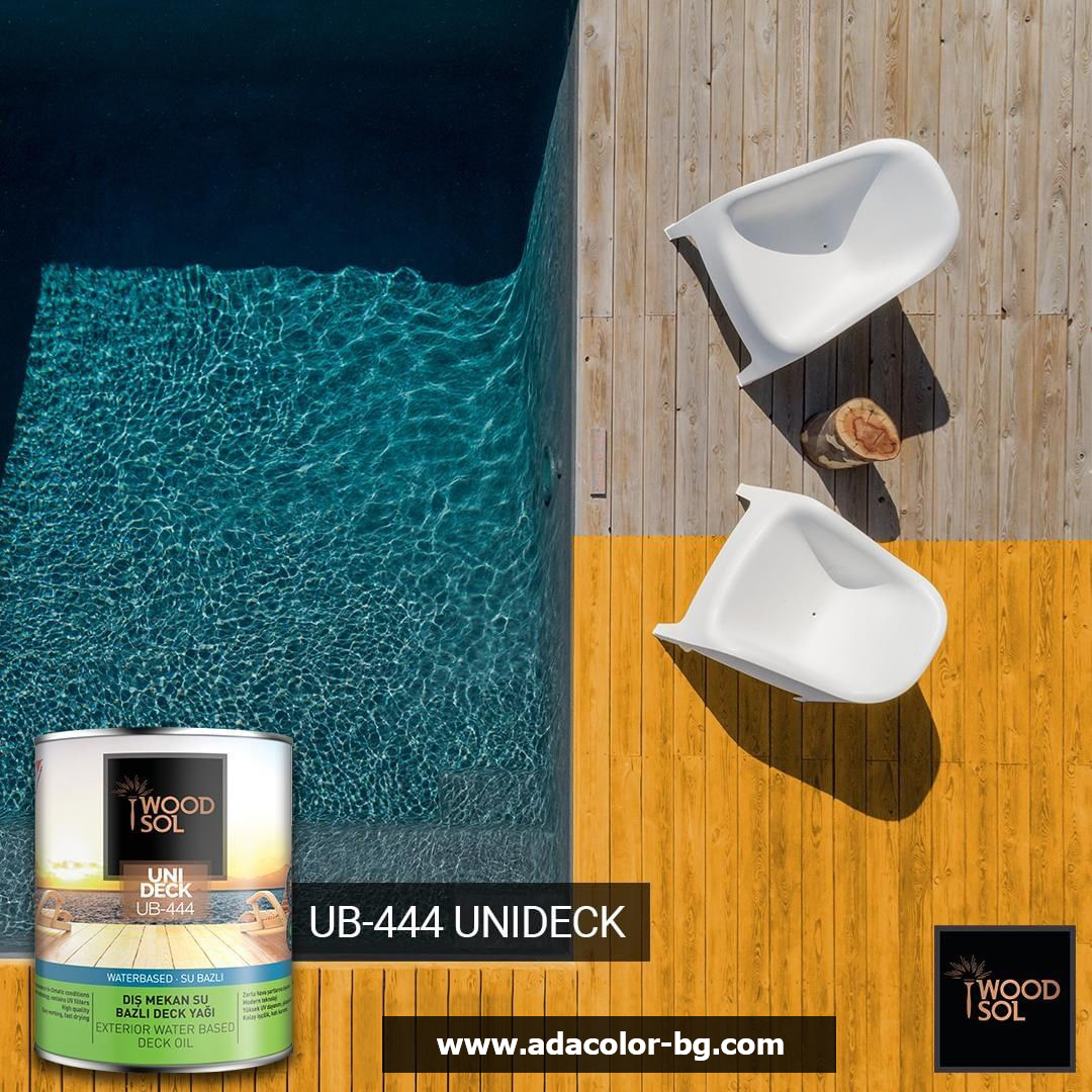 UNIDECK е защитно масло с високо съдържание на твърди частици и е кристално прозрачен продукт на водна основа. Продуктът може да се оцветява в нужната тоналност.