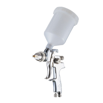 Стандартен бояджийски пистолет за пръскане под високо налягане и получаване на най-високо качество на нанесения продукт. Комплектът съдържа и нужните аксесоари: горно казанче 600 c.c., четка за почистване, гаечен ключ и филтър за боя.