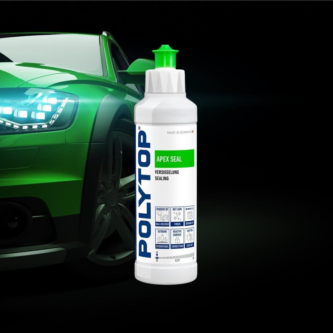 Apex Seal е финишна защитна паста с изключително лесна употреба в комбинация от естестен восък от карнауба и синтетични восъци. Съдържащите се полимери влизат в реактивна връзка с повърхността на боята, като по този начин увеличават експлоатационния живот. Резултатът е впечатляващ мокър ефект, дълбок блясък и дълготрайна защита от петна от насекоми. Висок водоотблъскващ ефект.