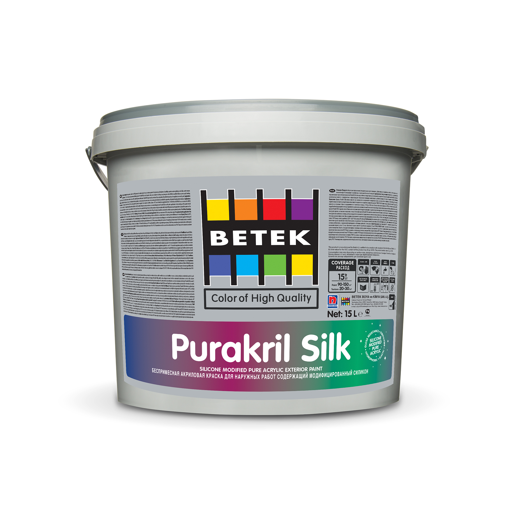 Ново поколение силикон-модифицирана чиста акрилна емулсионна боя за външно приложение с висока устойчивост на цвета и яркостта, превъзходна водоотблъскваща способност и копринено-матова текстура.