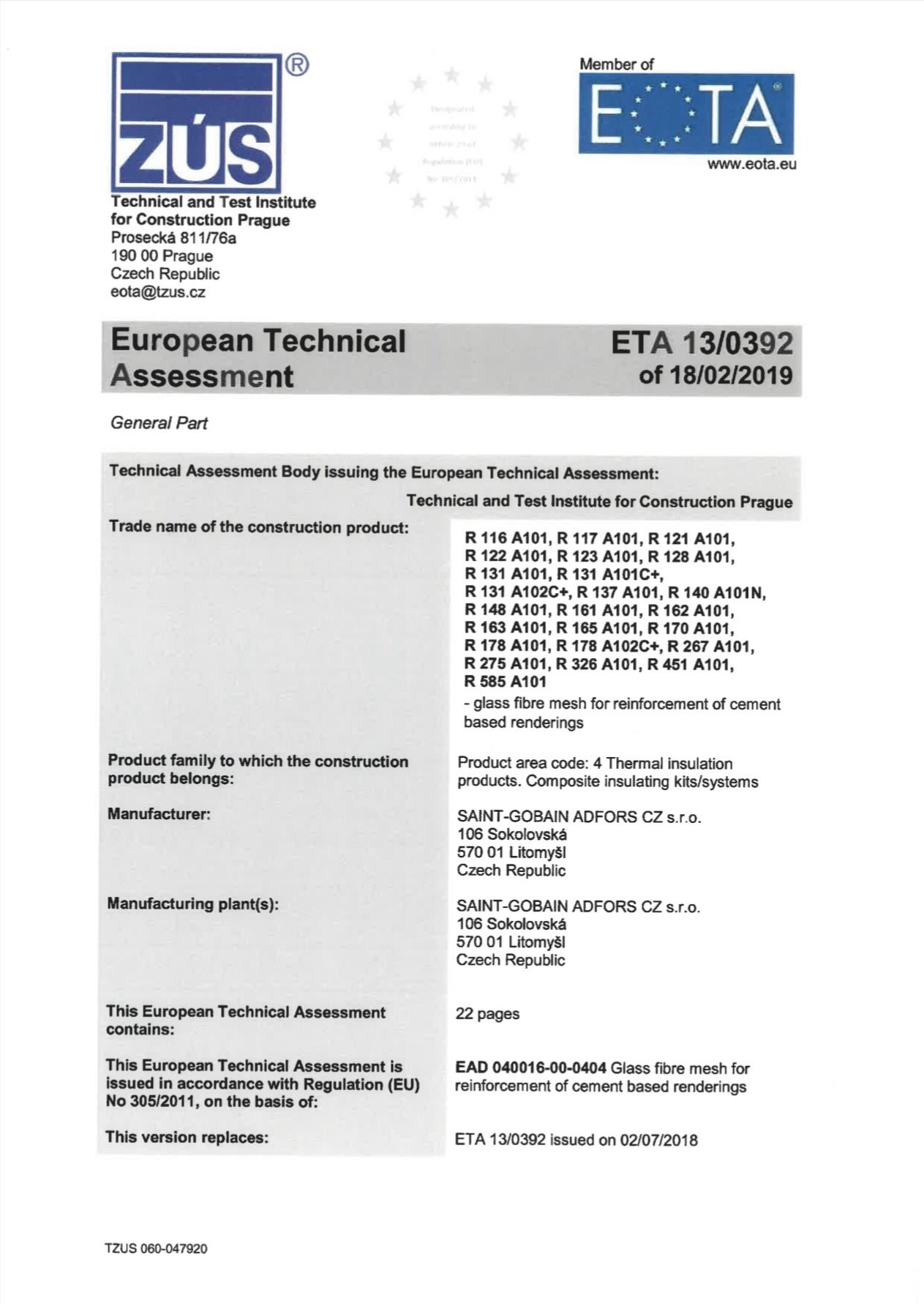 Стъклофибърна мрежа с устойчивост на алкални соли, която може да се използва при полагането на топлоизолационни шпакловки. Може да се използва при различни интериорни и екстериорни шпаклования на повърхности за заздравяване на основата и предотвратяване на напукване.Стъклофибърна алкалоустойчива мрежа 160 гр/кв.м.