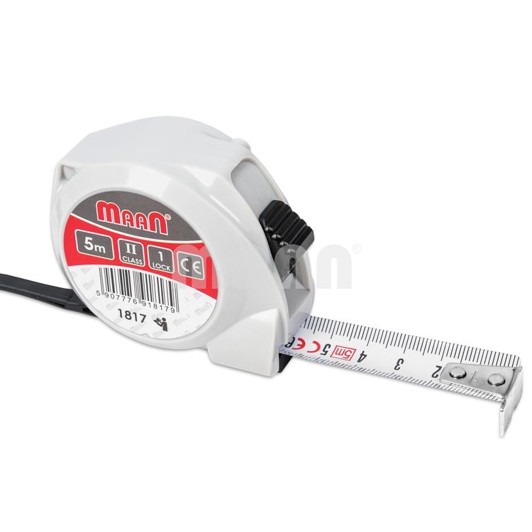 Скала в см и мм, лесно четима, автоматично заключване и щипка за колан. Ергономичната форма на калъфа позволява сигурен захват и дълготрайна употреба.