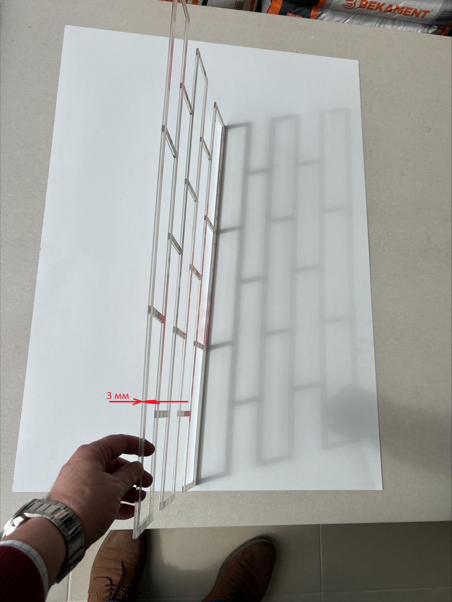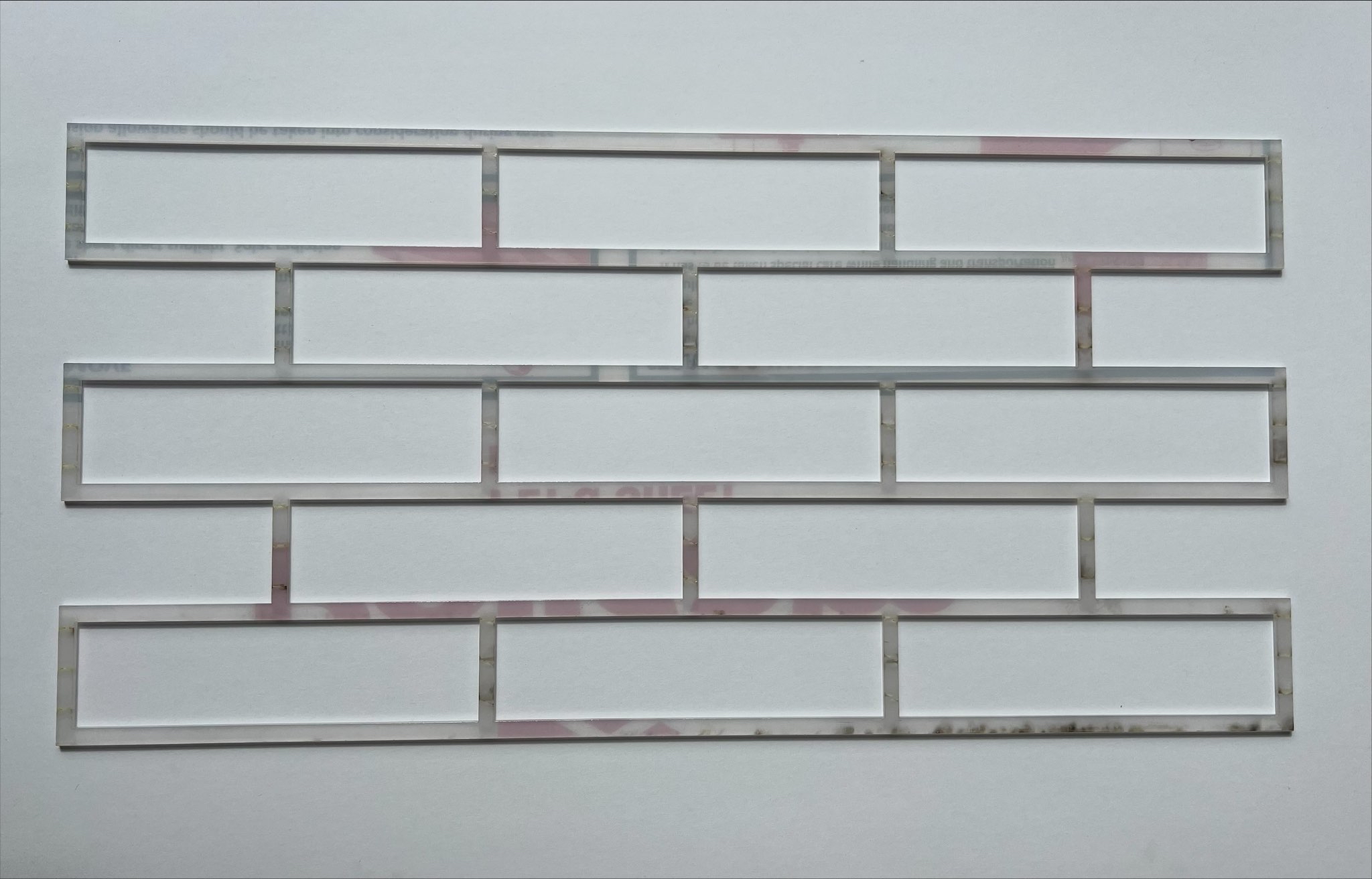 Шаблон за декорация на тухлички с висок релеф на 3мм, изработен от висококачествен (полимерен еластичен поликарбонат) с дебелина 3 мм, която може да се използва за многократна употреба. Подходящ за работа с релефни и структурни пастообразни смеси, както и с тебеширена боя.