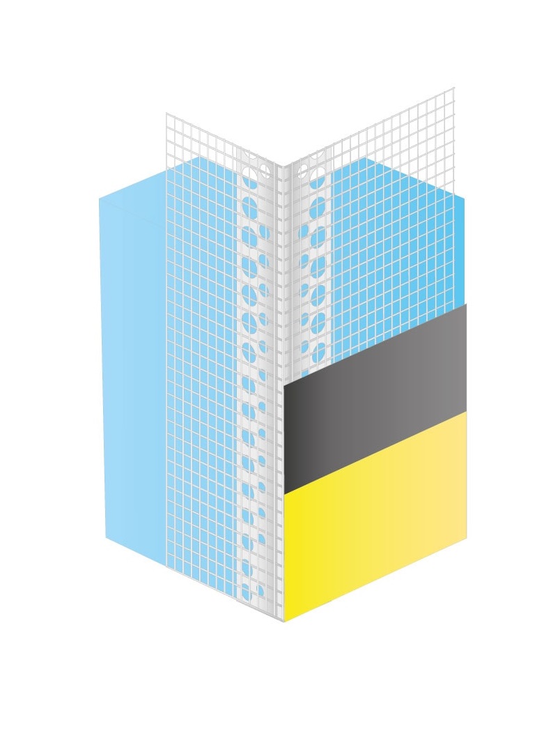 Дължина на профила: 2.5 м. Приложение: ПВЦ ъгъл с алкалоустойчива стъклофибърна мрежа ETAG. Служи за укрепване и изравняване на прави ъгли при полагане на топлоизолационни системи. Материали: ПВЦ ъгъл произведен от първична пластмаса с УВ защита и размери 22х22 мм. Алкалоустойчива стъклофибърна мрежа с размери 8x12 см и плътност 145 гр./кв.м. Стъклофибърна мрежа ETAG/145. Функции и предимства: Подсилване на ъгли по фасадата, прозорците, вратите и фасадните ръбове. Служи за защита от механични повреди. Предотвратява появата на последващи напуквания. Създава идеален прав ъгъл.