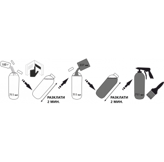 1. Изсипете добавката против хлъзгане в опаковата на боята 2. След смесване на добавката с боята разбъркайте добре, като разклатите за около 2 минути. 3. При 2К бои добавете втвърдителя и разбъркайте отново. 4. Добавката против хлъзгане може да се нанася с пистолет за шегрен (UBS) или валяк.