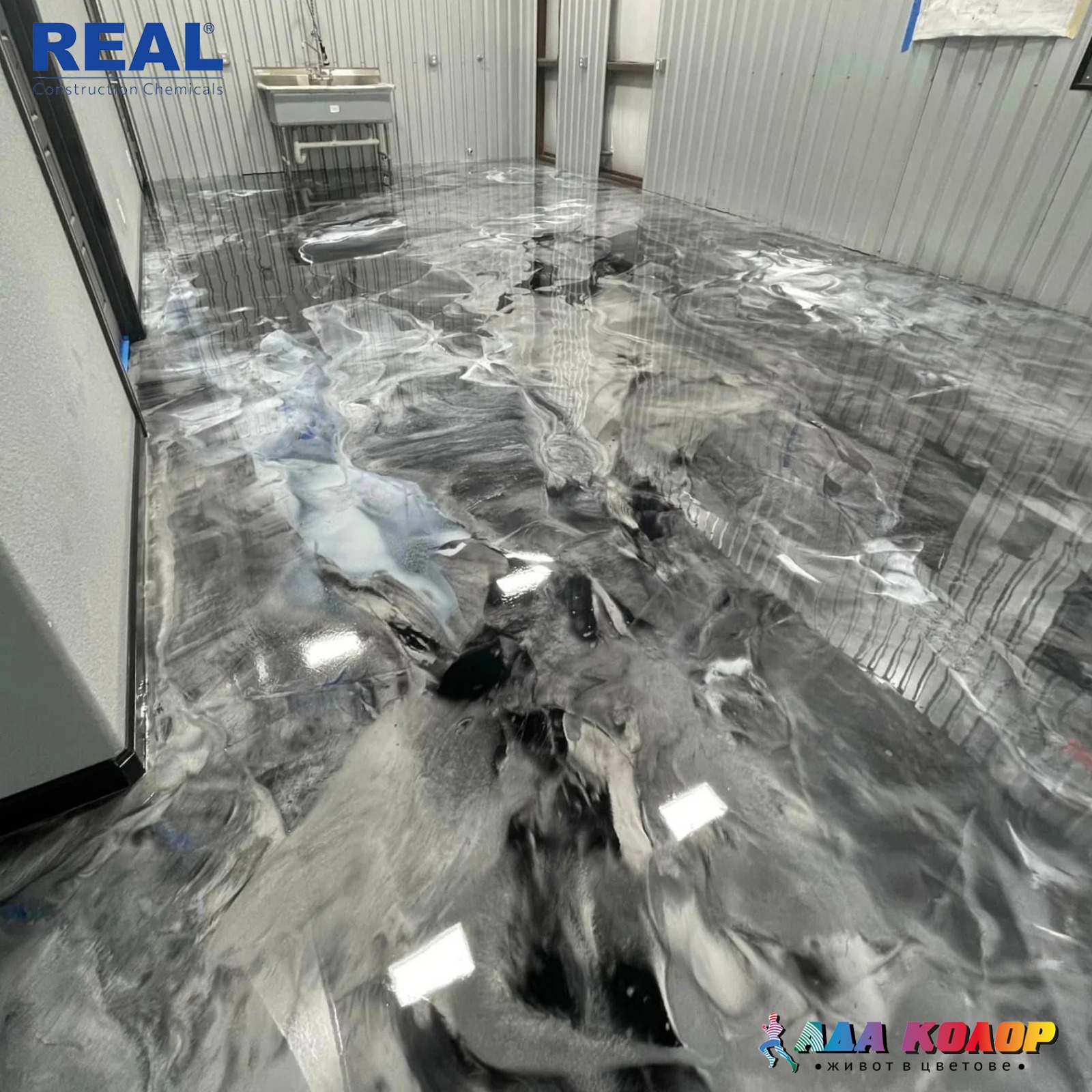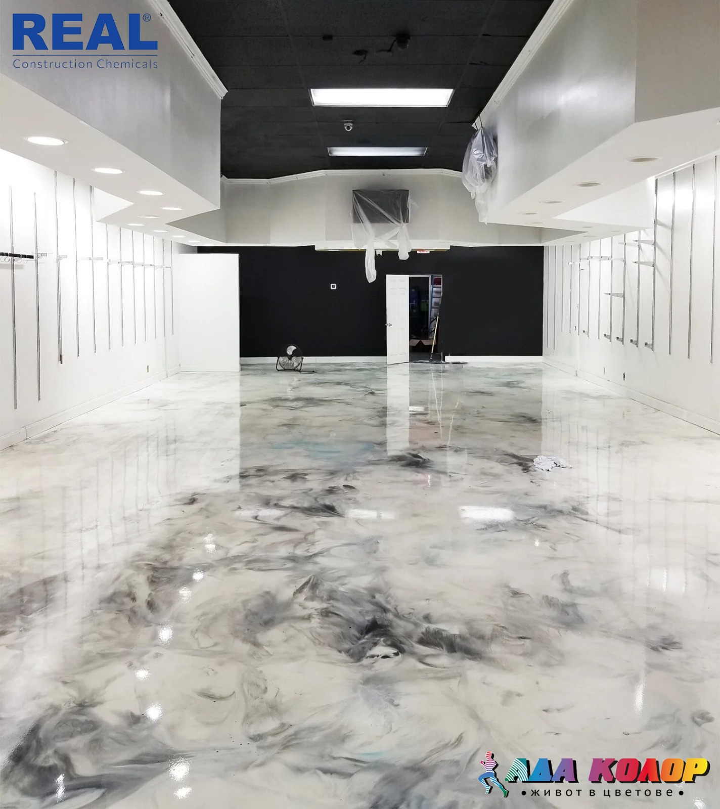 Двукомпонентно, саморазливно епоксидно подово покритие с перлен металик ефект на основата на висококачествени епоксидни смоли, устойчиво на пожълтяване и без съдържание на разтворители. Образува безфугова, гладка и гланцова повърхност с перлен металик ефект и възможност за постигане на структури с вид на мрамор, камък или керамика. След втвърдяване покритието притежава висока механична якост, отлична устойчивост на абразия, удари и въздействие на химикали, както и водоустойчива и антибактериална структура, улесняваща поддръжката. Подходящо за проекти, при които се изисква съчетание между декоративен външен вид и високи експлоатационни изисквания. Използва се в магазини, бизнес сгради, шоуруми, офиси, фоайета, жилища, лаборатории, коридори, училища, гаражи и други интериорни помещения. Може да се нанася върху всякакви бетонни, керамични, мраморни, мозайчени и стоманени повърхности. РАЗХОДНА НОРМА: Първи слой: Епоксиден грунд 0.3 - 0.4 кг/кв.м за един слой. Втори слой: Посипване с кварцов пясък 1.0-1.5 кг/кв.м. Трети слой: Междинно епоксидно подово покритие 0.5-0.6 кг/кв.м за един слой. Финишен слой: Епоксидна смола за под с перлен металик ефект 1.2-2.0 кг/кв.м за един слой. Общ разход: 3.0 - 4.5 кг/кв.м СЪХНЕНЕ: Отворено време за работа при +20ºC Време за пълно изсъхване при +22°C: 7 дни Температурен диапазон при нанасяне: между +5°C и +45°C. Дебелина на покритието при нанасяне на един слой: 1.0 мм на мокър филм Дебелина на покритието при нанасяне на един слой: 1.1 мм на сух филм Време за съхнене при +15°C: сух на допир: 120-160 мин. / придобива твърдост след: 5-6 ч. / интервал между слоевете: 3.5 ч. Време за съхнене при +25°C: сух на допир: 80-100 мин. / придобива твърдост след: 3-4 ч. / интервал между слоевете: 2 ч. Време за съхнене при +35°C: сух на допир: 60-80 мин. / придобива твърдост след: 1.5-2 ч. / интервал между слоевете: 1.5 ч.