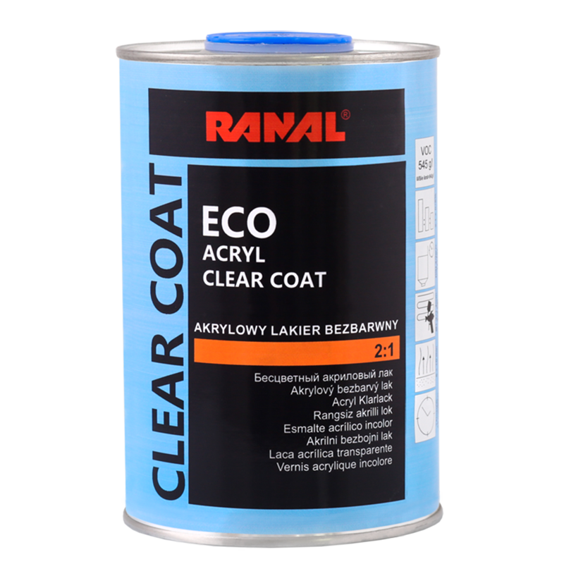 Преди нанасяне внимателно смесете компонентите. Нанасяйте акрилния лак върху втвърдения пласт основен лак. Нанасяйте с помощта на пистолет един, два или три единични слоя. След като сте нанесли един слой, изчакайте около 5-10 минути, за да изсъхне. Времето за изсъхване зависи от температурата и от гъстотата на слоя. 10 минути след нанасянето на последния слой може да втвърдите повърхността с по-висока температура. Внимание: Не нанасяйте акрилния лак при температура под 10°C.