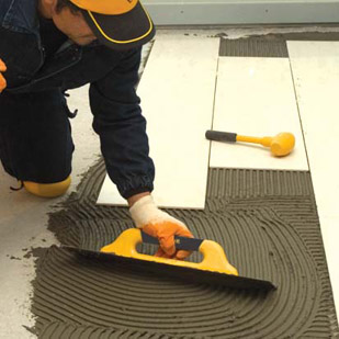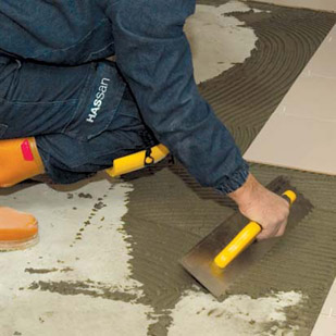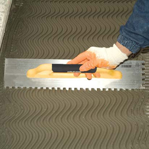 Маламашка с гумирана затворен тип дръжка с мек захват. Използва се в строителството за разстилане на лепило при лепене на фаянсови плочки и теракот.