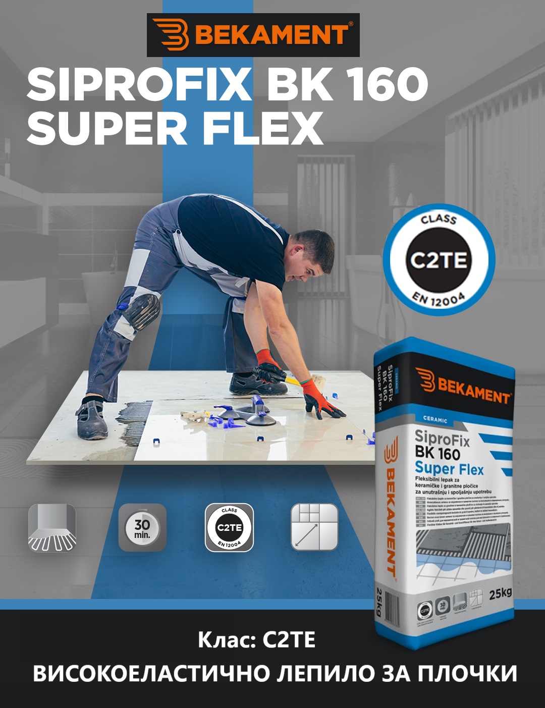Гъвкаво, висококачествено полимерно-циментово лепило, използвано за интериор и екстериора (на хоризонтални и вертикални повърхности). Използва се за полагане на керамични плочки, мрамор, гранит, естествен и изкуствен камък, както и за нанасяне върху повърхности от стари, съществуващи плочки. Подходящ е за полагане на големи плочки с ниска абсорбция (~ абсорбция ≤ 3%). Използва се за монтаж на керамични плочки върху повърхности с подово отопление.