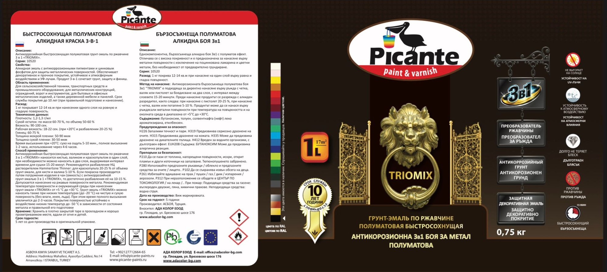 Алкидна боя за метал 3в1 в цветове от RAL каталог - Полумат - Triomix enamel