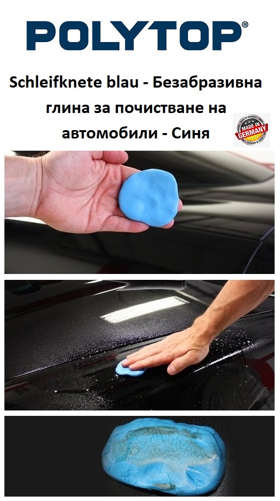 Schleifknete blau е абразивна глина без абразивен ефект за ефективно отстраняване на фини и груби отлагания върху бои на превозни средства като ръжда, дървесна смола,прах и останки от насекоми.