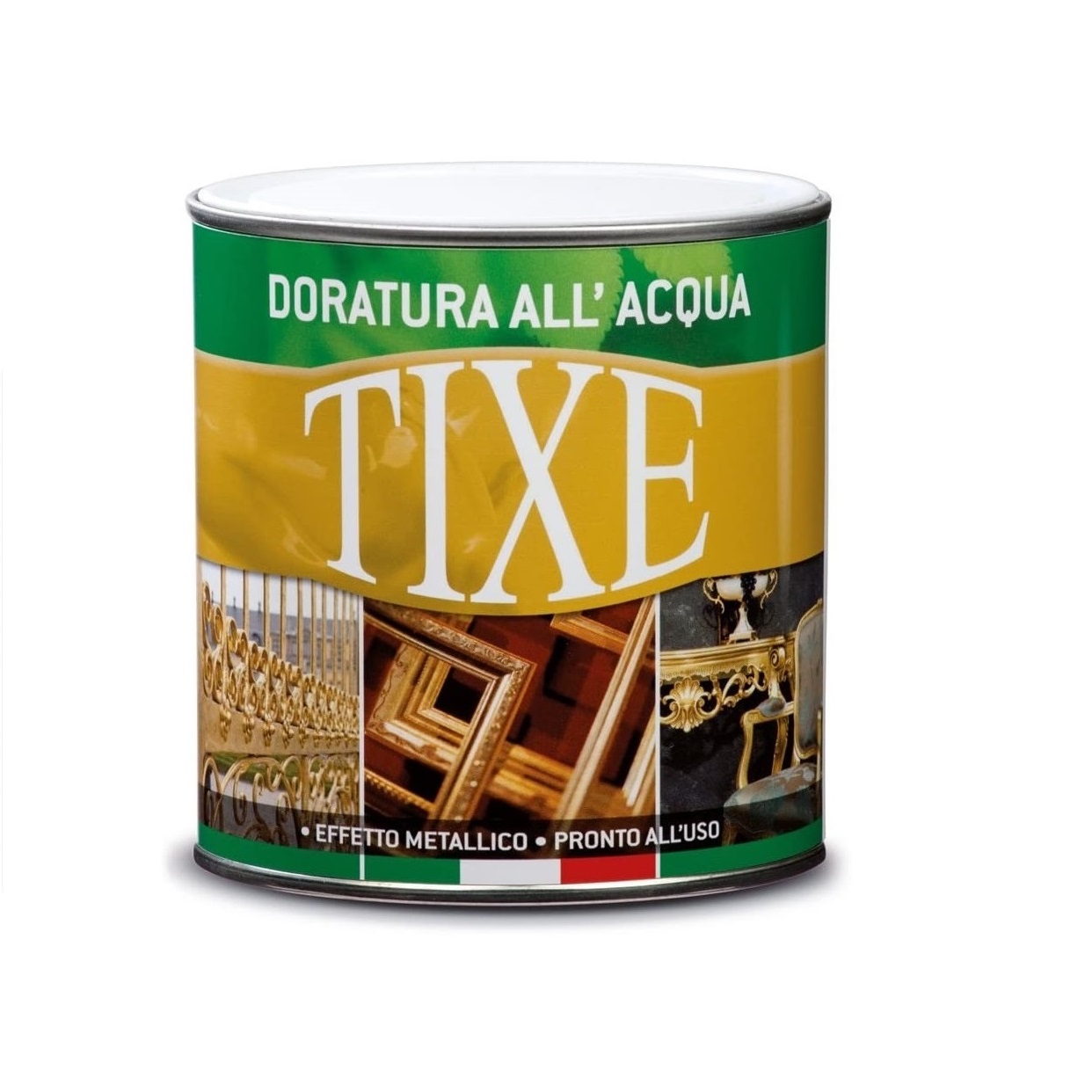 • Интериорна златна боя произведена с смоли на водна основа, пигментирани с бронзов прах. Подходящ за боядисване на дървени рамки, нови и антични мебели, месингови предмети