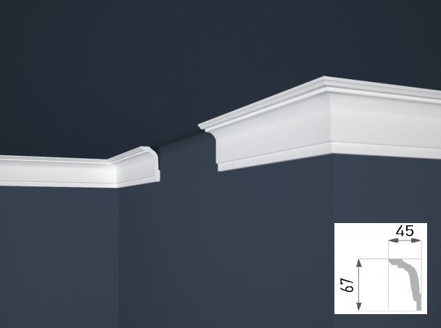• Стиропорен декоративен корниз - (67x45мм) - дължина 2м
