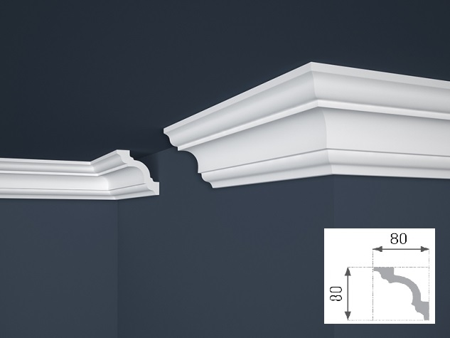 • Стиропорен декоративен корниз - (80x80мм) - дължина 2м