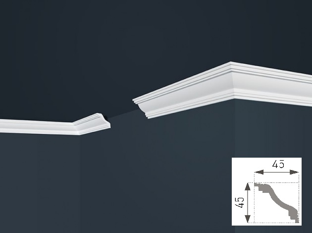 • Стиропорен декоративен корниз - (45x45мм) - дължина 2м