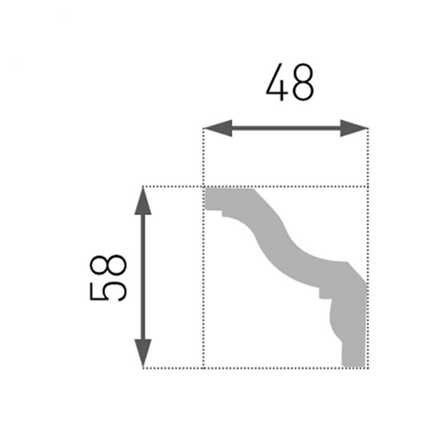 • Стиропорен декоративен корниз - (48x58мм) - дължина 2м