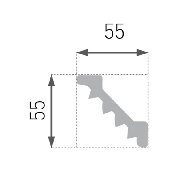 Стиропорен декоративен корниз - (55x55мм) - дължина 2м