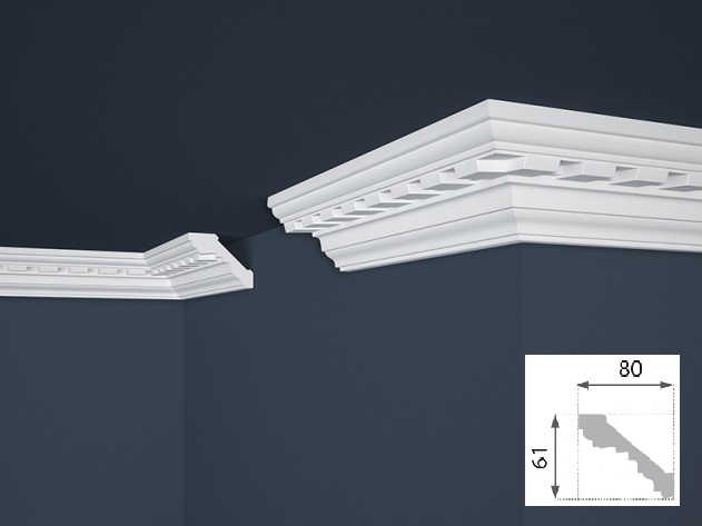 • Стиропорен декоративен корниз - (80x61мм) - дължина 2м