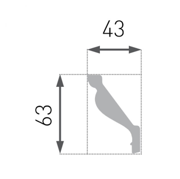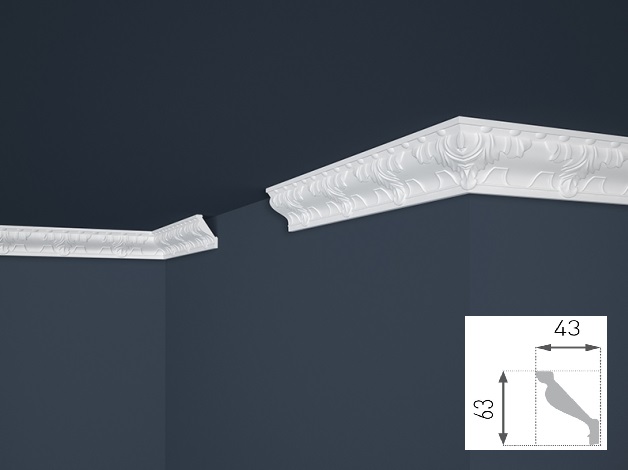 • Стиропорен декоративен корниз - (43x63мм) - дължина 2м