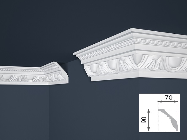 • Стиропорен декоративен корниз - (70x90мм) - дължина 2м