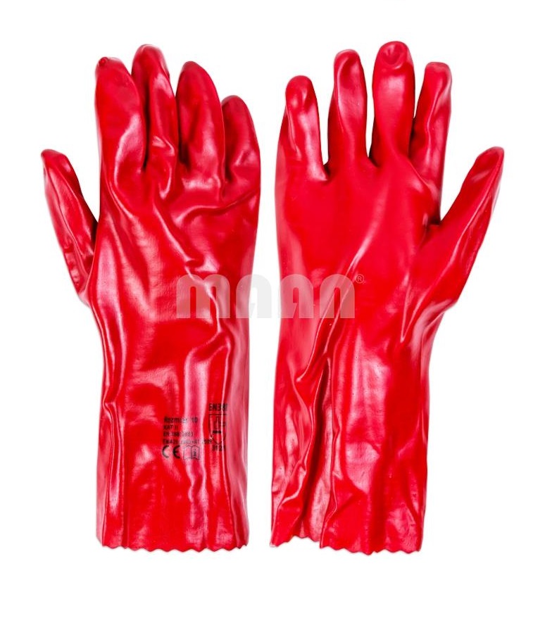 Защитни дълги ръкавици с PVC покритие устойчив на детергенти, почистващи препарати и основи и устойчиви на абразия.