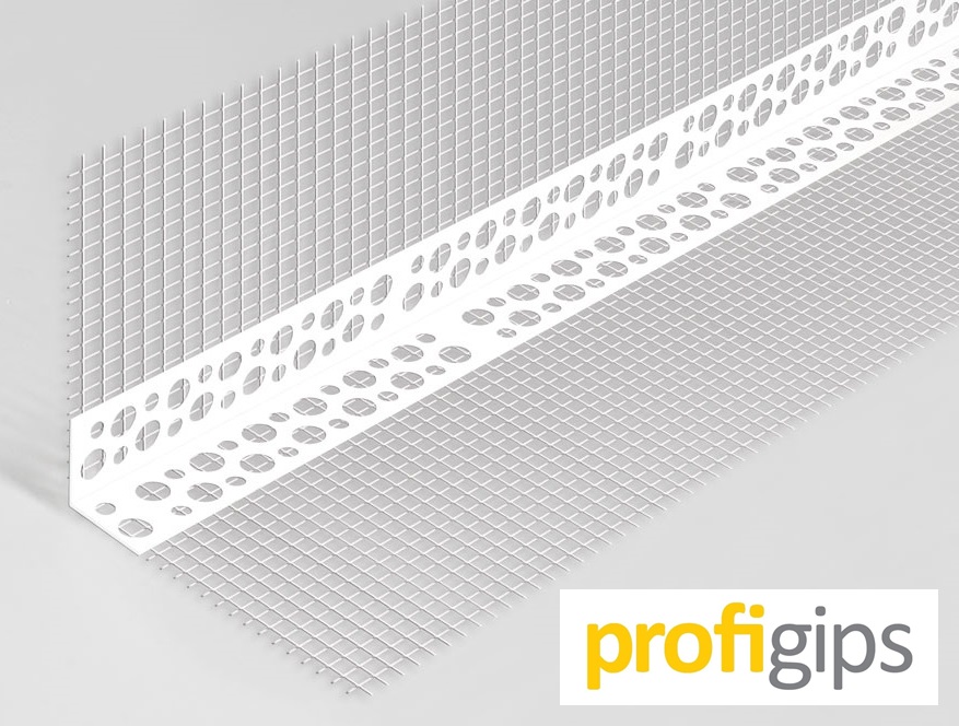• Пластмасов ъглов профил произведен от първична пластмаса с интегрирана високо-алкалоустойчива стъклофибърна мрежа VERTEX 145 гр./кв.м., за оформяне на прави ъгли (900). Помага за добре защитени и прави фасадни ъгли при изграждането на топлоизолационни системи.