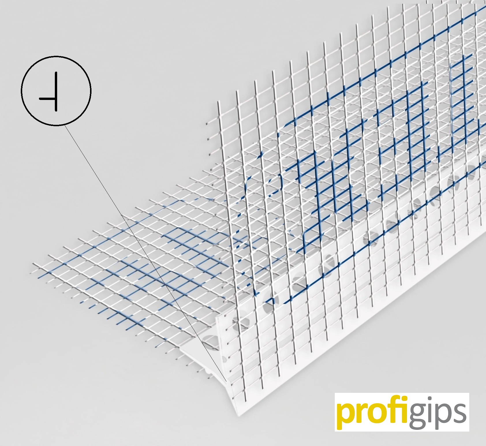 Дължина на профила: 2.5 м Приложение: ПВЦ водооткапващ ъгъл с алкалоустойчива стъклофибърна мрежа VERTEX. Служи за отвеждане на дъждовната вода от сградата, като монтажа на профила се осъществява в долната част на балкони, тераси и други издадени участъци на сградата. След монтажа остава видим ръб, който е със защитна лента, която се отстранява след нанасяне на мазилката, и по този начин профилът остава чист. Материали: ПВЦ ъгъл произведен от първична пластмаса с УВ защита. Алкалоустойчива стъклофибърна мрежа с размери: 10x10 см и плътност 145 гр./кв.м Стъклофибърна мрежа VERTEX/145. Функции и предимства: Подсилва ръбовете на фасадата. Иновативен ултразвуков заваръчен шев между мрежата и профила, който е устойчив на разкъсване, високи температури и алкални соли. Служи за защита на ръба от механични повреди и предотвратява появата на последващи пукнатини. Създава идеален прав ъгъл.