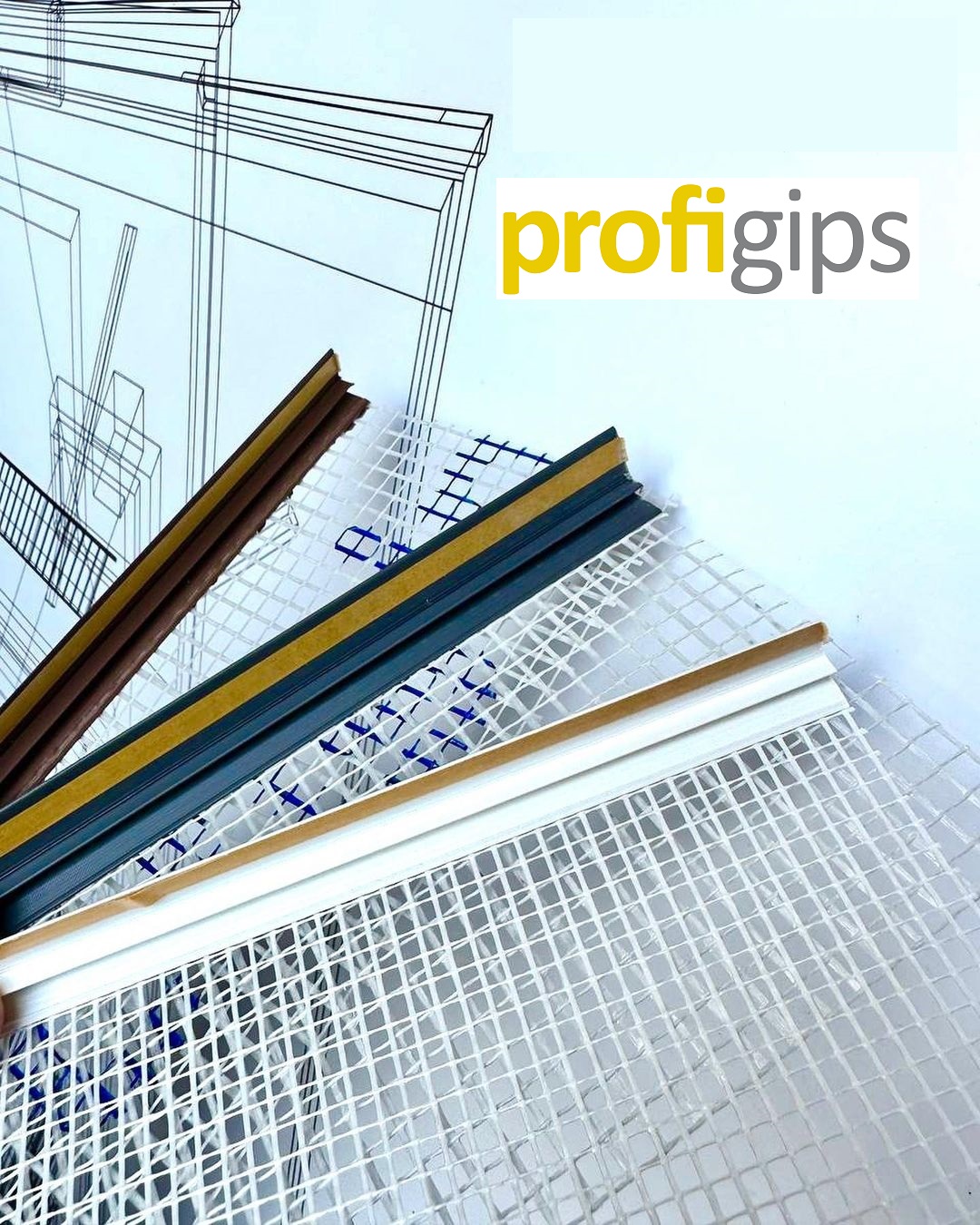 • Пластмасов прозоречен профил с мрежа с интегрирана чрез ултразвуков заваръчен шев алкалоустойчива стъклофибърна мрежа PROFIGIPS, за предотвратяване на пукнатини между мазилката и дограмата.