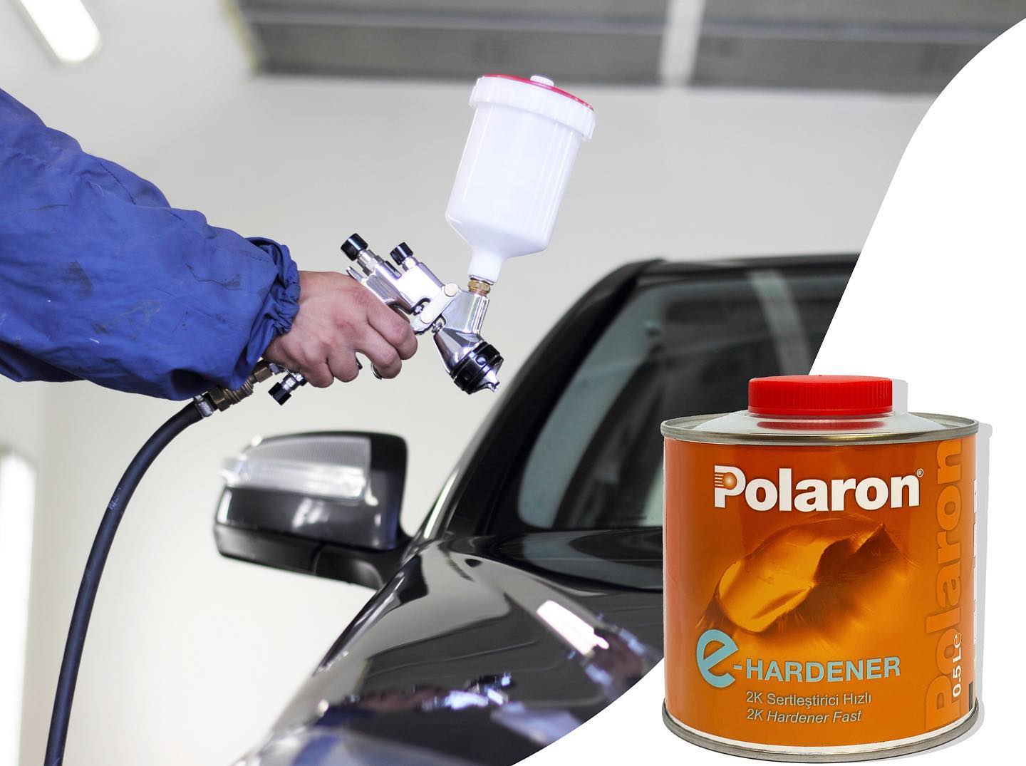 e-Hardener е стандартен втвърдител за 2K акрилен лак а-Acryl/C2. Използва се при нормални температури върху малки и средно големи обекти/зони, както и за частични и точкови ремонти. Препоръчителната температура за употреба е между 18°C и 30°C. При нормални условия на съхранение и неотворена опаковка срокът на годност е от една до година и половина. Ако опаковката е отворена, тя може да се съхранява не повече от една седмица. Трябва да се затвори веднага след употреба. Ако е необходино разреждане използвайте разредителите на Polaron T 8-18, 18-25 и 25-35. Използвайте подходяща респираторна защита (препоръчва се използването на бояджийска цяла лицева маска - 3M™ 6900). За по-подробна информация вижте техническата характеристика и информационния лист за безопасност на втвърдителя. Разфасовки: 0.5 л и 1 л